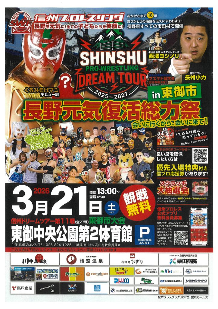 3/21(土)信州プロレス77市町村ドリームツアー長野元気復活総力祭 東御大会開催のお知らせ